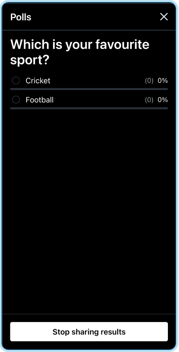 - Once the Poll is launched, the results of the poll can be shared with the participants of the session