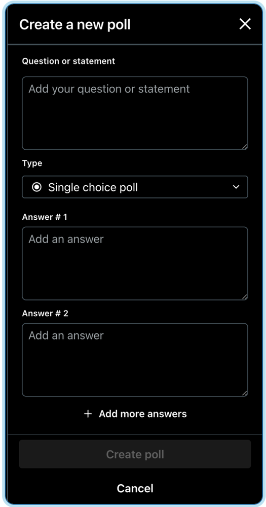 - A minimum of 2 options is required to create polls and a maximum of 5 poll options can be added.