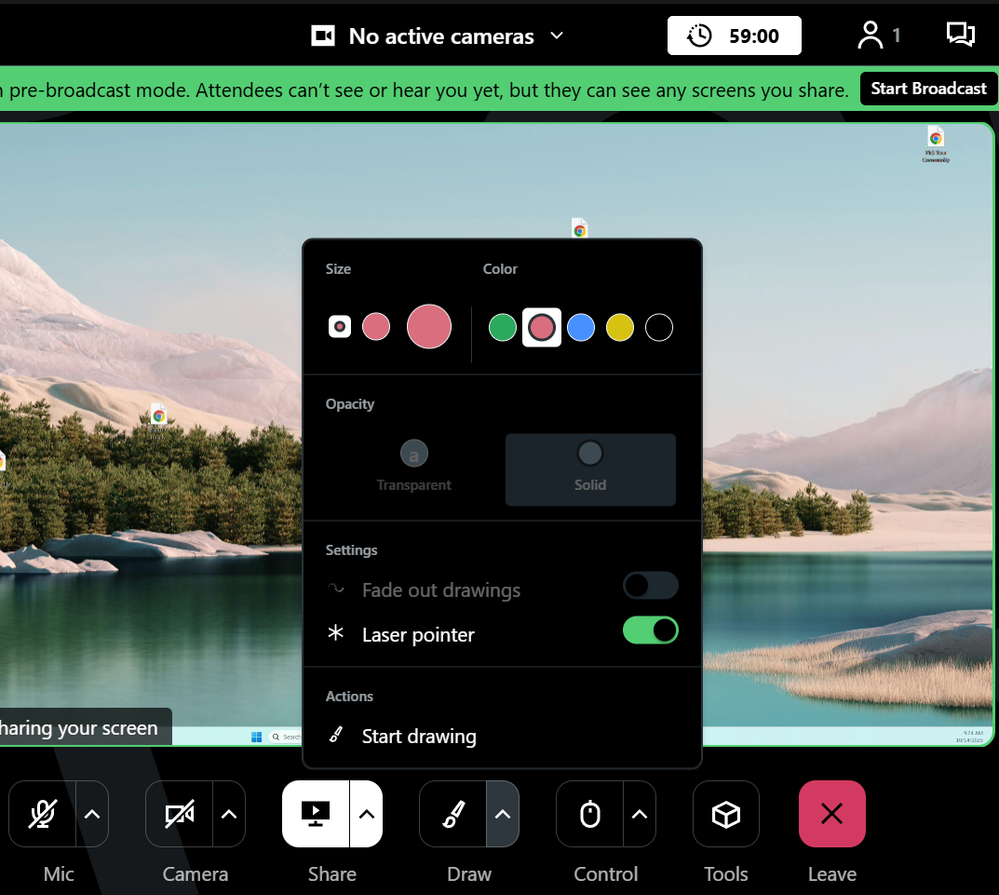 - 💡 Drawing Tools, now more discoverable than ever, can be accessed right from your bottom meeting control bar from your regular mode!